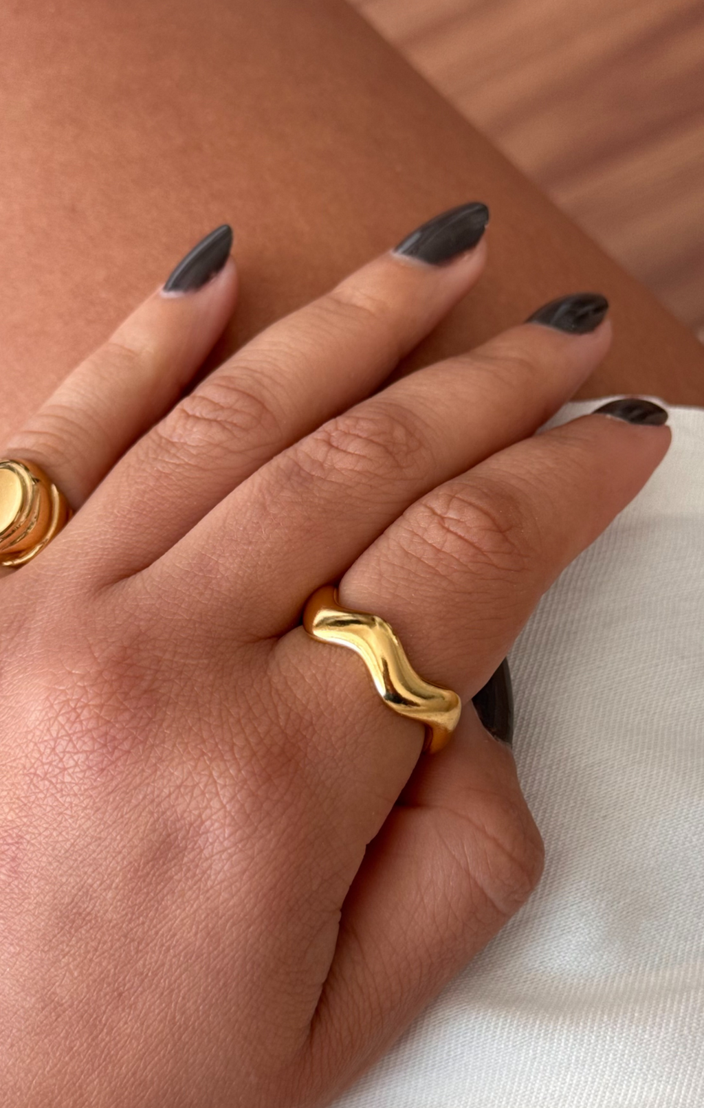 O anel com formato ondulado é a união perfeita entre design orgânico e sofisticação minimalista. Inspirado nas formas suaves encontradas na natureza
