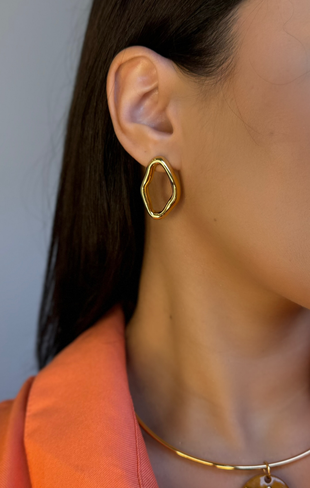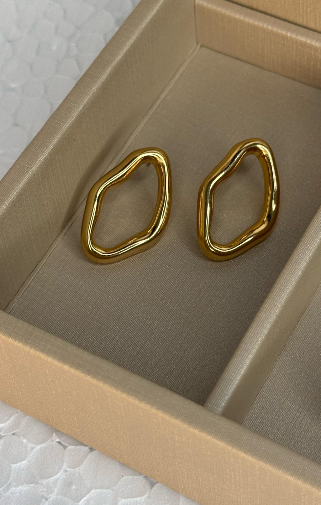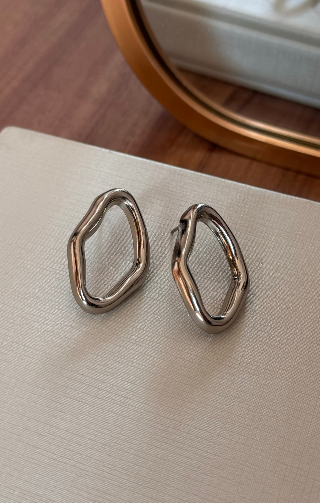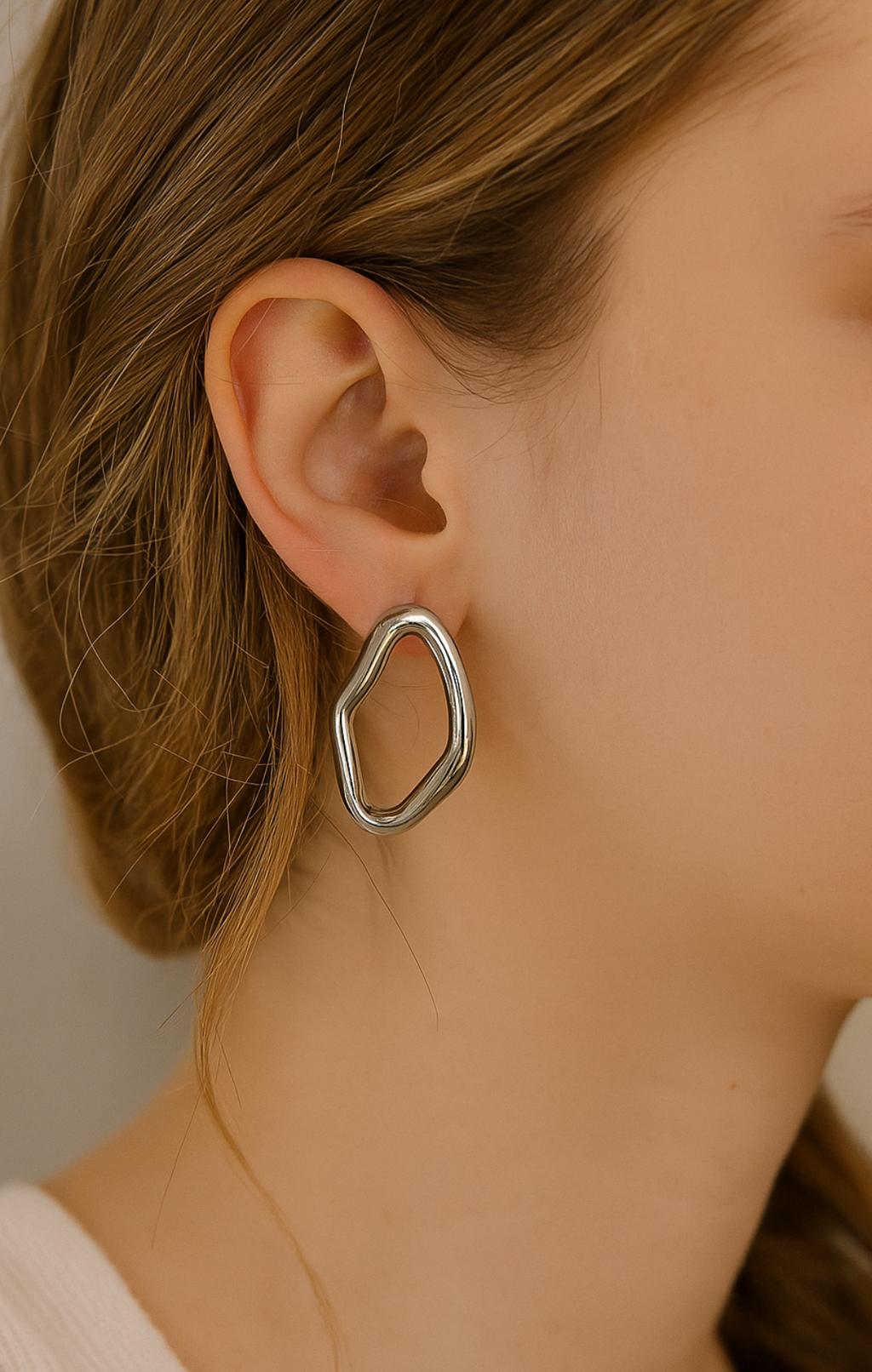 Um brinco sofisticado que destaca o design em formato orgânico com linhas fluidas e modernas, criando um acessório único que transforma qualquer look — do casual ao mais elaborado — com charme, personalidade e exclusividade.