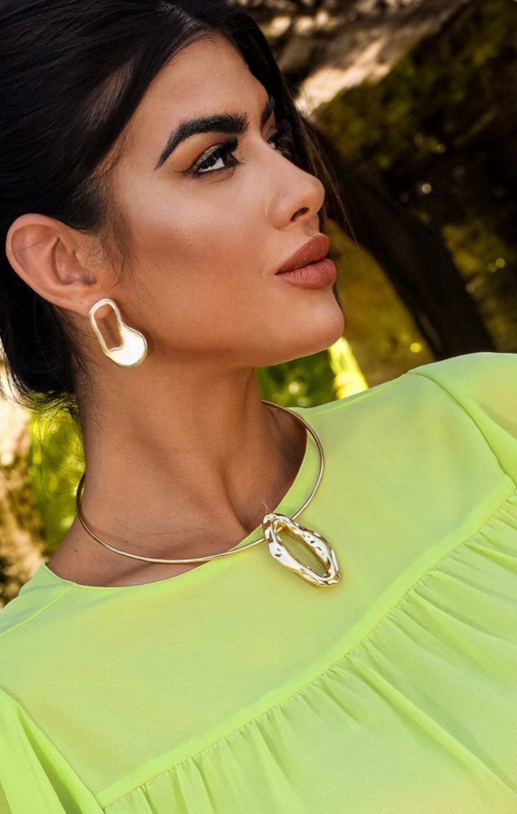 Um colar sofisticado que une design orgânico e linhas marcantes com acabamento refinado, criando um acessório único que transforma qualquer look — do casual ao mais elaborado — com charme, personalidade e exclusividade.